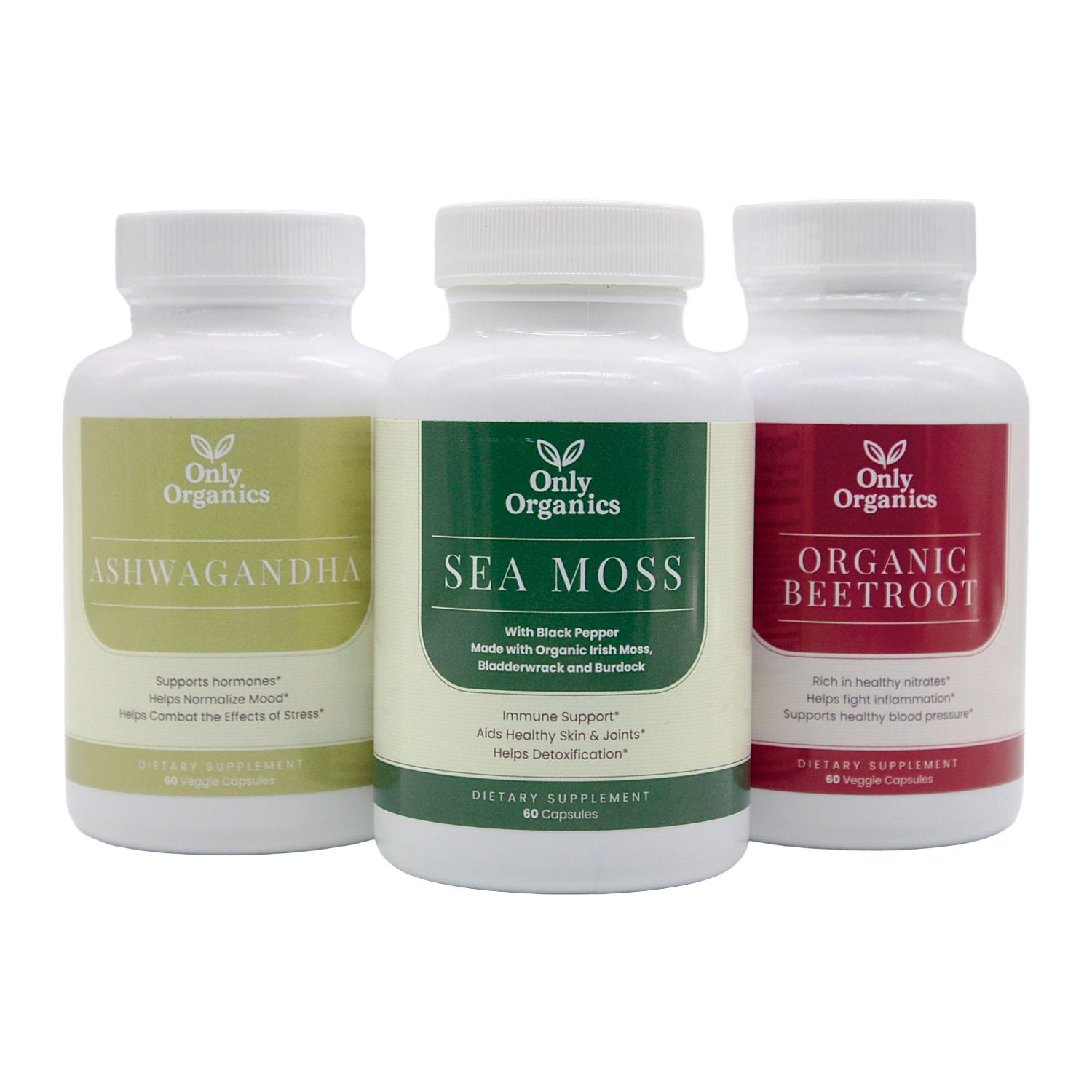 Formulated with 100% organic, lab-tested ingredients, this 3-in-1 bundle combines the powerful benefits of Ashwagandha, Sea Moss, and Beetroot to help you feel stronger, think clearer, and perform better every day.